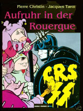 illusorischen Ziele der Revoluzzer. Erst 1972 schlagen sich die Nachwehen von 1968 bei Tardi in Form seines ersten wichtigen Comic-Buches «Aufruhr in der Rouergue» nieder. Und zwar mit geradezu rührender Naivität. Noch schwebte damals die Überzeugung in der Luft, man könne mittels Provokation und Agitation Machtstrukturen knacken und verändern. Tolkiens Zwerge führen hier unter Leitung eines Cohn-Bendit- Klons Businessleute an der Nase herum, junge Revoluzzer wehren sich gemeinsam mit der Natur – in der Form von Gnomen – gegen einen Multikonzern, der eine stillgelegte Kupfermine wieder in Betrieb nehmen will. Die Chefs werden weich geklopft, im letzten Bild sieht man sie als Ziegenhirten durchs Land ziehen.