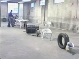 «Der Lauf der Dinge» undStills aus Patrick Freys Video «Lauf der Dinge: In der Werkstatt», 1985/2006 (aufgenommen während der Dreharbeiten zur Skizze «Der Lauf der Dinge», 1985)