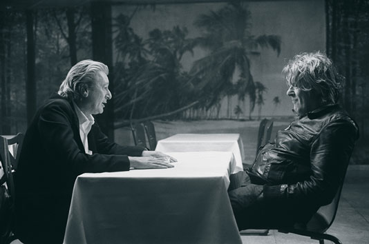 Und last but not least hat Benchetrit zwei Giganten der französischen Musikszene aufgeboten, die sich gleich selber spielen. In der Raststätte machen die Tourbusse von Alain Bashung und Arno einen Zwischenstopp. Während sich die Bandmitglieder an der Bar der Raststätte tummeln, sitzen sich die zwei alternden Musikheroen an einem Tisch wie in einem Westernduell gegenüber. Das erinnert an Iggy Pop und Tom Waits, die in Jim Jarmuschs «Coffee And Cigarettes» sich freundschaftlich belauern, auch wenn Benchetrit versichert, er hätte die Szene geschrieben, bevor der amerikanische Verwandte in die Kinos kam.